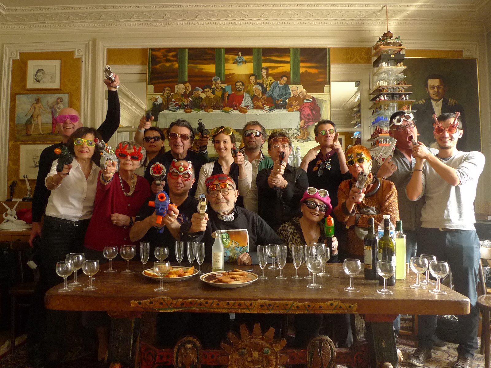 A la fin des réunions parisiennes (dans lesquelles on tâche de rassembler les personnes… les moins incapables d’aujourd’hui?), nous tirons, photographiquement, avec des armes en plastique. Personne ne dit, pas même pour plaisanter, comme les meilleurs administrateurs d’aujourd’hui: