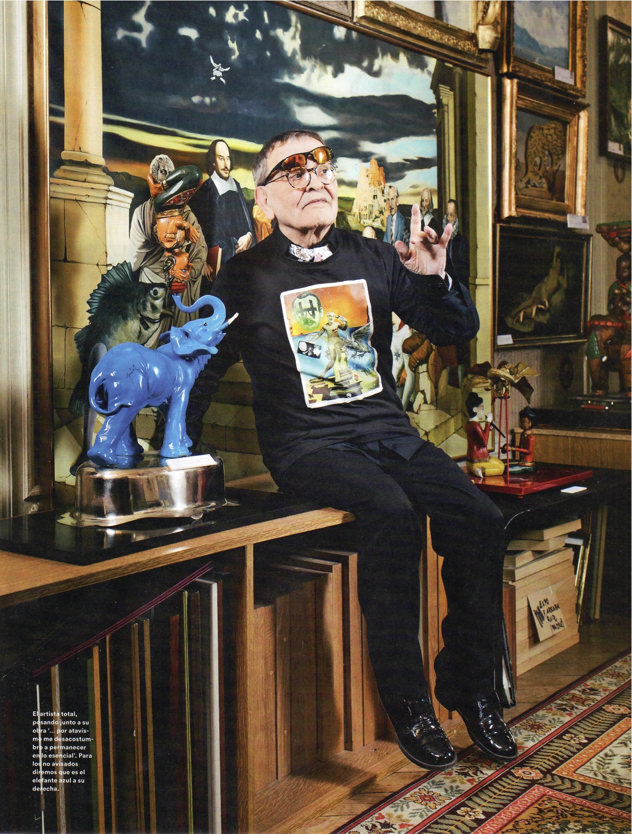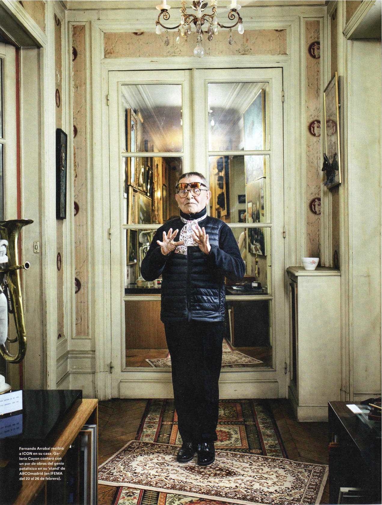 “Avec ses poèmes plastiques Arrabal est un artiste absolu. Il n’y a pas de frontière entre sa vie et sa création. Avec lui l’art plastique ne se limite pas au cadre du tableau. Ou au socle de la statue. L’œuvre est totale. Le plus petit interstice n’y échappe pas. Même ses tapis sont une œuvre. Une “installation”. Précisément tous les détails de la vie d’Arrabal s’entremêlent avec son art. Ils construisent l’artiste Arrabal. Il réussit à être lui-même sans dominer, sans écraser. Fernando Arrabal triomphe depuis son ailleurs :